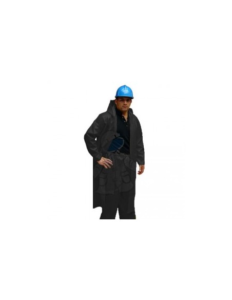 Conjunto fabricado en Impermeable PVC. Vulcanizado con resistencia a químicos en medianas concentraciones, hidrocarburos, grasas, sangres de pollo, res, peces y productos marinos. Tallas de la S-XL. Tallas mayores a XL tienen un costo adicional.